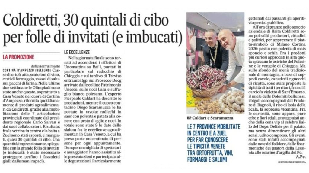 Essere alla Baita di Coldiretti a Cortina, in questo momento così importante per il Veneto, non è stata una presenza simbolica. È stato lavoro vero. Preparazione, organizzazione, confronto con produttori arrivati da tutte le sette province. Oltre 30 quintali di eccellenze portate in montagna non si improvvisano. Si costruiscono con responsabilità, coordinamento e fatica.